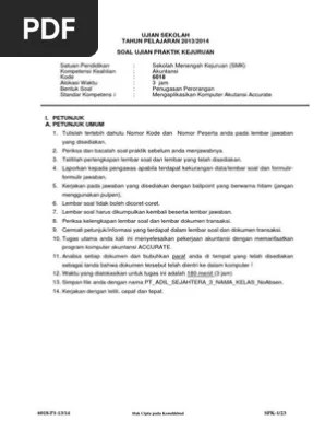 Contoh Kasus Myob Untuk Smk Perusahaan Dagang Toko Cemerlang - Soal Try Out 2013 - Ujian nasional tahun pelajaran 2011/2012.
